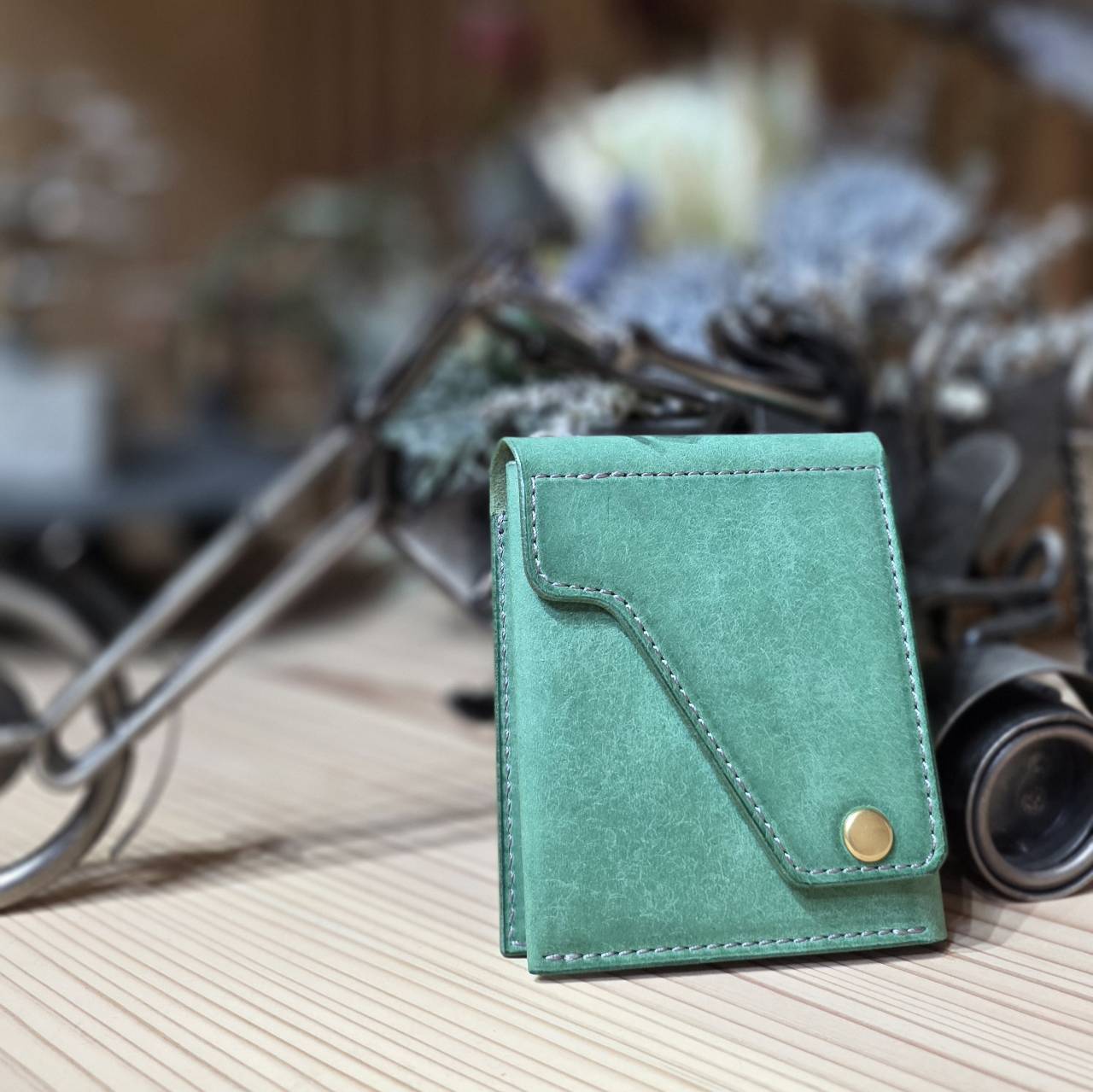 カラー: メイン→明緑 サブ→明緑 金具→真鍮 ステッチ→灰系