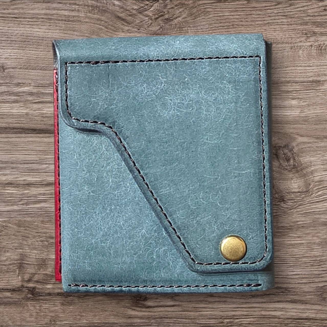 カラー: メイン→水浅葱 サブ→赤 金具→真鍮 ステッチ→焦茶系