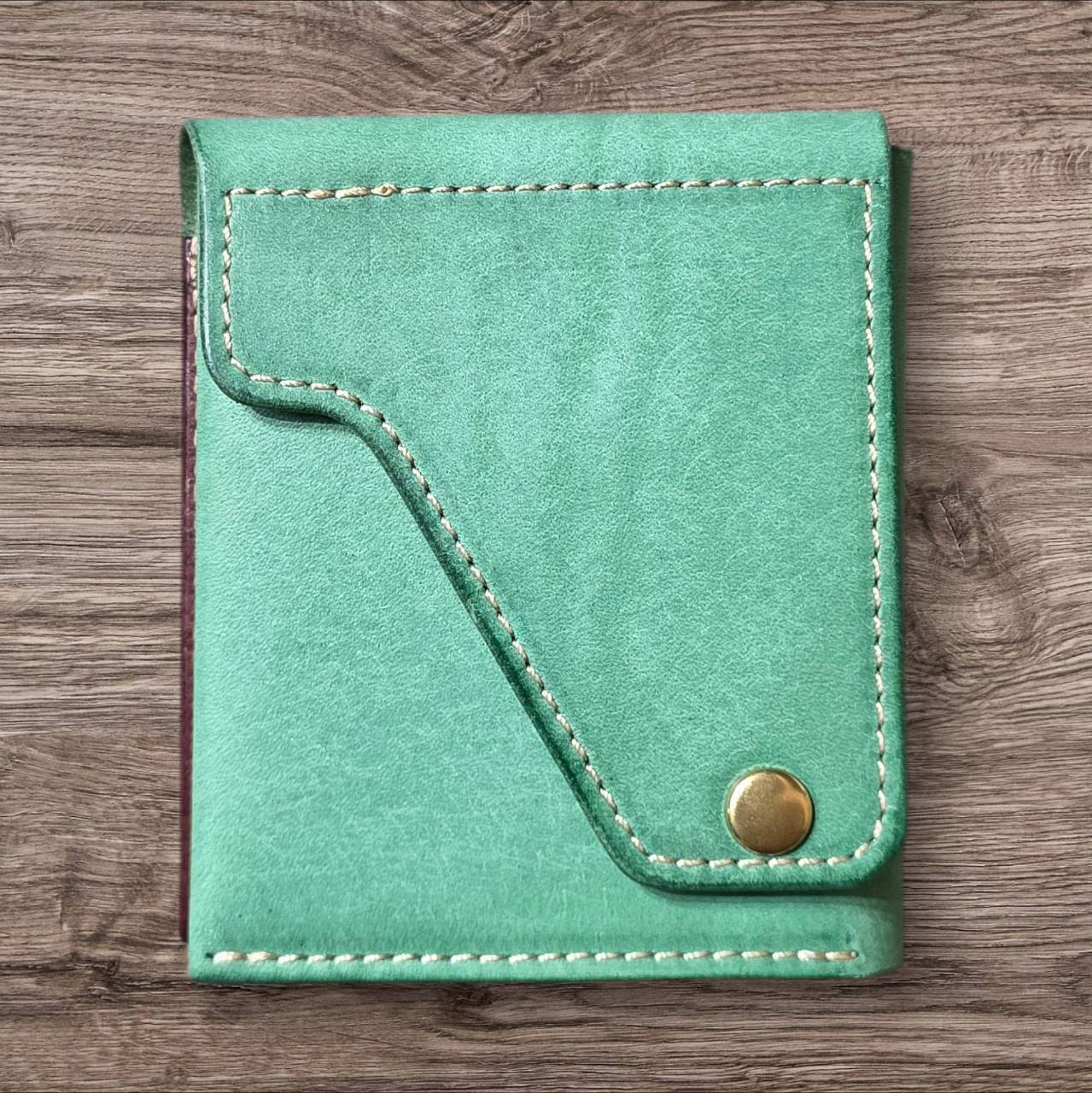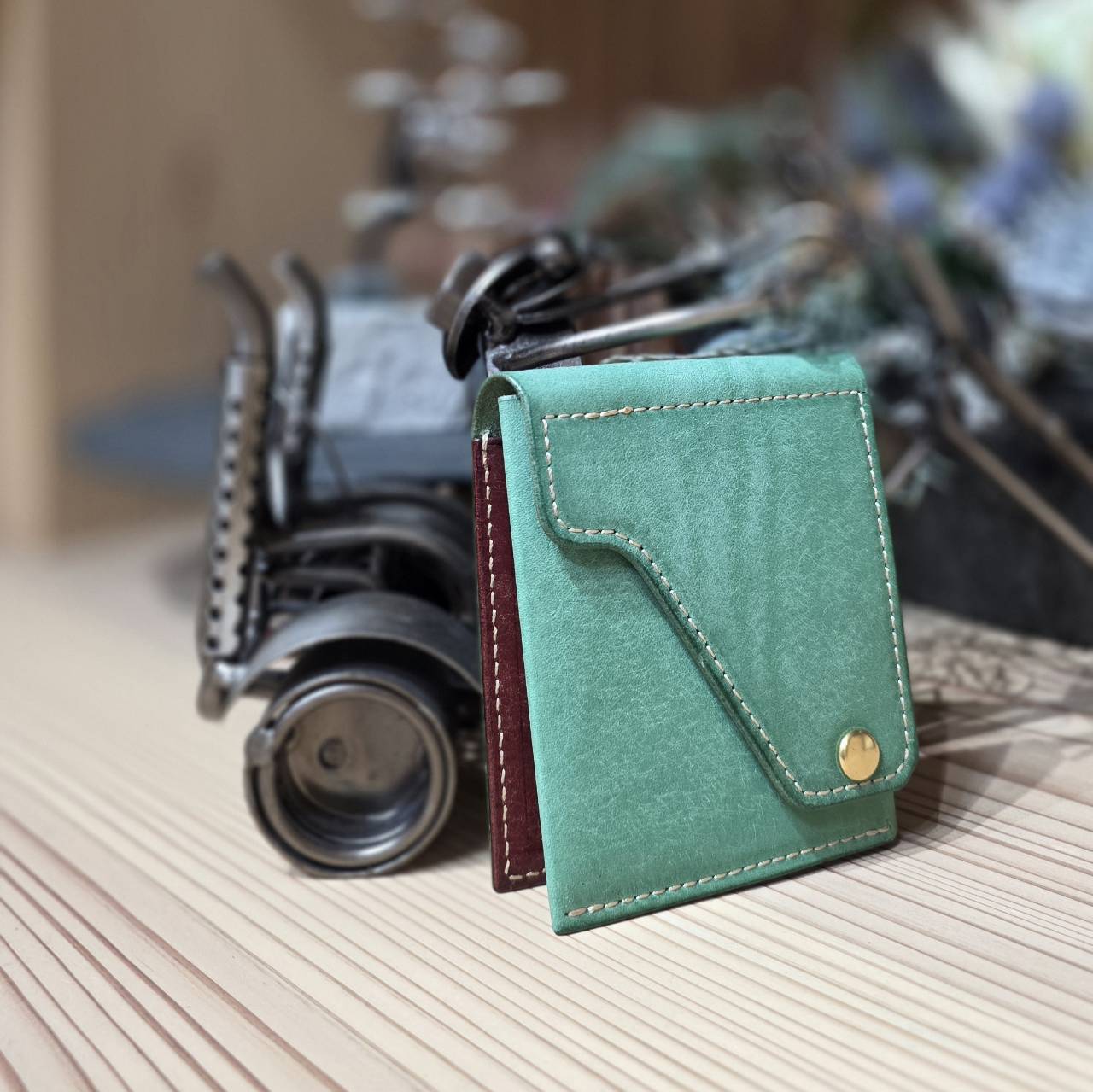 カラー: メイン→明緑 サブ→バーガンディ 金具→真鍮 ステッチ→ベージュ系